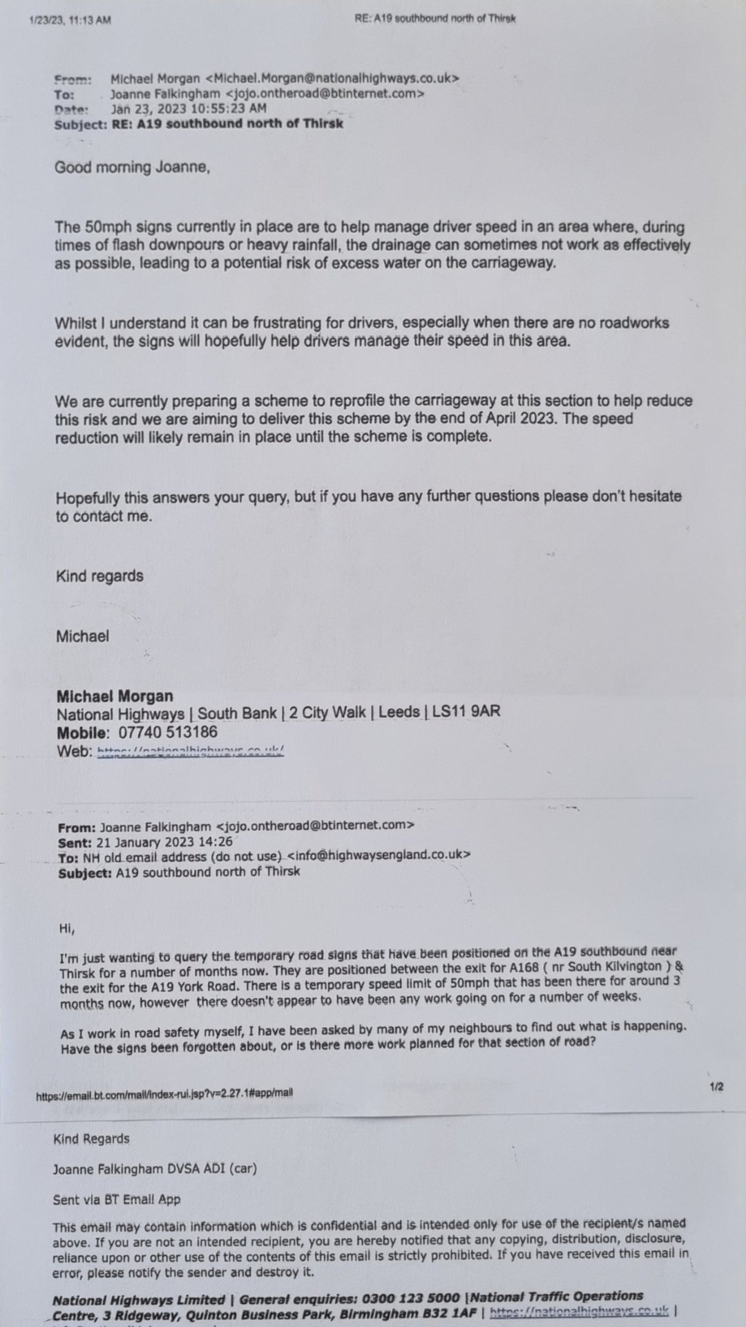 Temporary 50mph speed limit on the A19 southbound near Thirsk